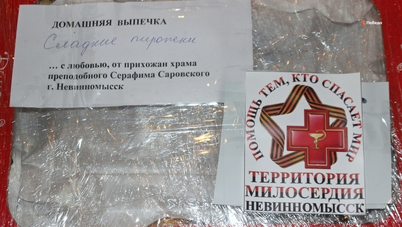 В Невинномысске работают несколько волонтёрских групп. Кто-то собирает сборные грузы, кто-специализируется на вязании маскировочных сетей. Православные храмы также являются центрами сбора гуманитарной помощи. В этот раз, к примеру прихожане Никольского храма отправили с конвоем чеснок, сало, лимоны, тёплые вязаные носки. Приход собора Покрова Пресвятой Богородицы собрал посылки с чаем, минеральной, водой, тёплыми носками, также было выделено 6 тыс. рублей на транспортные расходы конвоя.