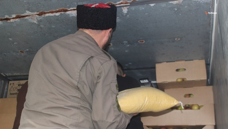 Погрузка началась с прибытия на склад «Территории милосердия» машин под загрузку. В отправке участвовали студенты, казаки, сотрудники предприятий — многие не впервые приходят сюда. Самых опытных отправляют в кузова грузовиков: нужно так разместить многочисленные ящики и коробки, чтобы всё свободное место было заполнено.