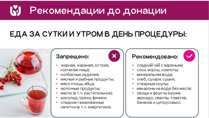 Медики напоминают, что стать донором может любой здоровый человек старше 18 лет и весом не менее 50 кг. За сутки перед донацией рекомендуют придерживаться специальной диеты, а после процедуры уделить внимание восстановлению организма.